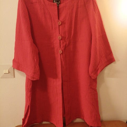 Myydään sininen tunika jossa punaisia pallokuvioita. Koko 46/48. Tunika on ehjä ja siistissä kunnossa
