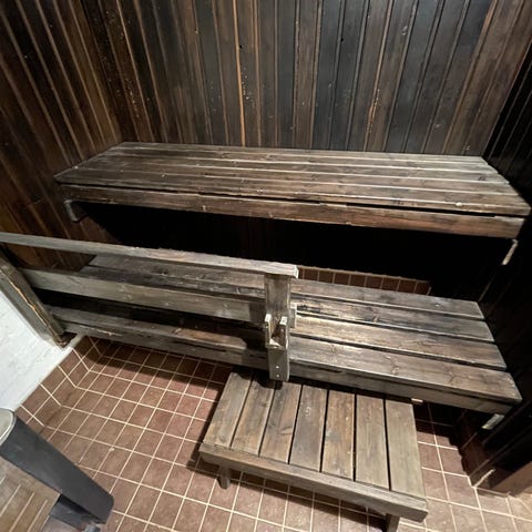 Myydään purettavaksi viikottaisessa käytössä olleet 16v. runko + saunalauteet (Cello-tavarasta). Lauteiden mitat ovat 233x 60 cm + kulma 155x60; 185x 63cm + kulma 108x63 ja 100 x 64 cm. Istumakorkeudet 109, 70 ja 35 cm. Kunto hyvä. Selkänojat samaan kauppaan.