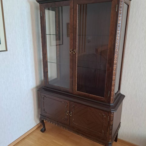 Kannessa muutama vesijälki vuosikymmenten kuluessa tullut. Muuten kaappi on ikäisekseen erittäin siisti.