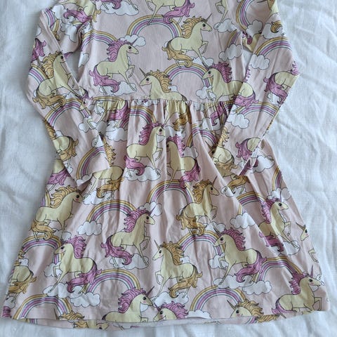 Kappahl 122/128 koon hihaton yksisarvismekko. Uutena ostettu ja vain kerran päälle ehtinyt. Mustat kuviot haaleni ehkä aavistuksen jo käyttöönotto pesussa. Hinta 3 euroa. Sijaitsee Tampereen ja Kangasalan rajalla Vatialassa. Postitus kuluja vastaan mahdollista. Laittele viestiä, mikäli löydät muutakin ostettavaa, yhdistelen posteja tarvittaessa.