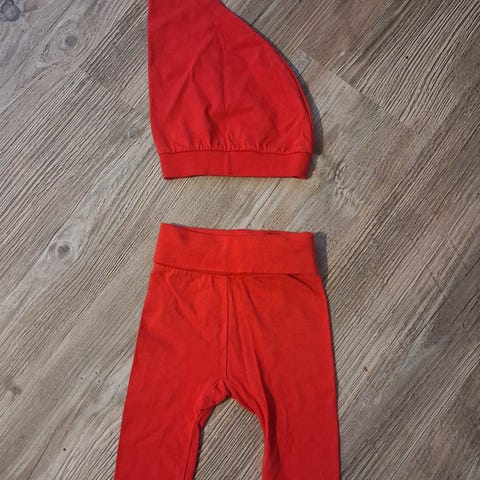 Vauvalle jouluasusteita. Töppöset jarrupohjilla ja tonttulakki. 0-6kk