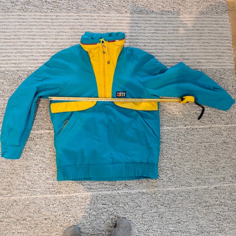 vahvakankainen anorakki mitoiltaan kainalos.-kainalos. 64 cm mikä vastaa sastan kokoa N46, tuoksuton pesty jäi pari harmitonta nokitahraa, mm. vyötärösaumassa selkäpuolella käyttövuosilta tyypillistä pinttymää joka voi lähteä tahranpoistopesussa,
