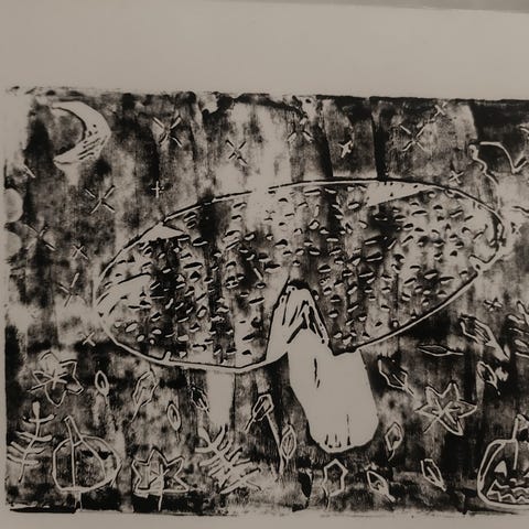 Kissa aiheinen linopainettu printti a4 kokoiselle paperille ja lopuksi vielä laminoitu