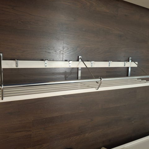 Myydään Ikea Elvarli vaatenaulakko. Ollut pari vuotta eteisen naulakkona. Eteisen muutostöiden vuoksi ei sovellu enää käyttöömme. Pöytä tasoissa hyvin pieniä naarmuja avaimista yms, muuten kunto uudenveroinen. Vetolaatikon korkeus 22cm. Vetolaatikon ja tasot voi myös asettaa eri korkeuksille. Leveys 80, syvyys 55, korkeus 217cm. Savuton ja eläimetön talous. Myydään purettuna.