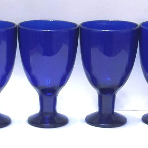 Myydään 9 kpl Kerttu Nurmisen suunnittelemia jalallisia Verna-juomalaseja (22 cl). Väri vedensininen. Lasit ovat olleet vähällä käytöllä ja niiden kunto on hyvä.