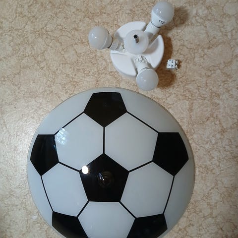 Myytävänä jalkapallo plafondi, kolme polttimoa, pistoke, halk. 35,5cm