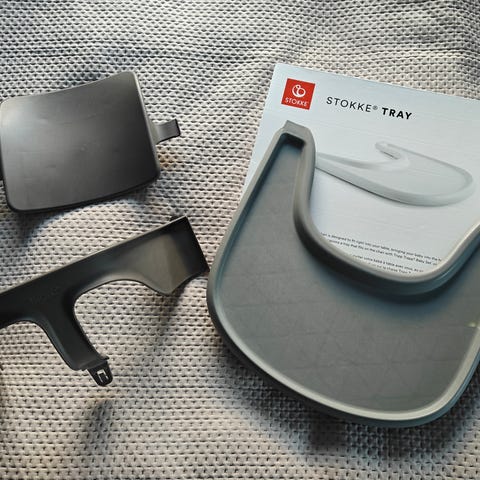Valkoinen tripp trapp tarjotin. Kunto hyvä, mutta pinta värjääntynyt. Vain nouto.