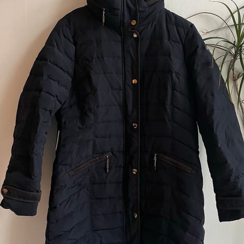 Laadukas ja lämmin Esprit musta untuvatoppatakki vyöllä. Koko 40. Kai-kaimitta: 55 cm. Irroitettava huppu ja vetoketjulliset taskut sekä povitasku. 50% untuvaa ja 50% höyhentä. Savuton talous, ei eläimiä.