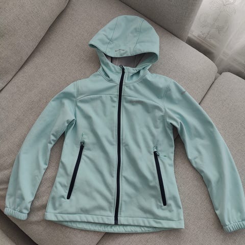 Softshell takki windstopper selkämyksellä. Hiihtopaita. Etukappaleessa paksumpi kangas. Molemmat kokoa 152cm. Extrana paitaan sopivat housut joita paikkailtu.