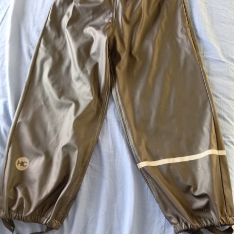Myydään hyväkuntoiset mustat sadehousut koko 116. Heijastin kulunut mitta muuten housut ok kuntoiset ja ehjät.
