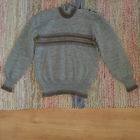 Muutaman kerran käytetty villapaita, sisältää 80 % lampaanvillaa ja 20 % nailonia, koossa L, hartia-helma pituus 73 cm