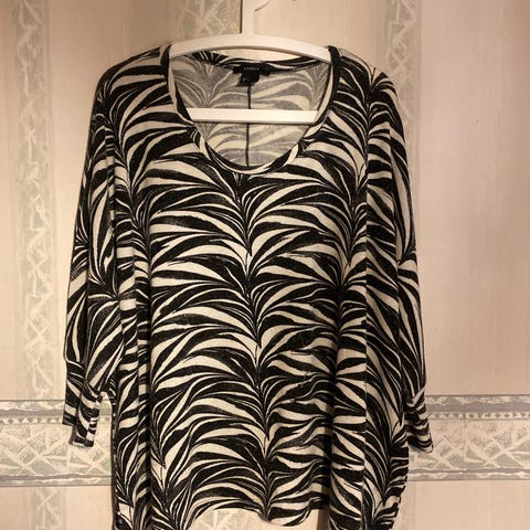 Lindex naisten neulepusero, laatikkomalli, 3/4 hihat, koko L ( sopii hyvin 44 kokoa käyttävälle). Kiva kuosi. Hinta 4€