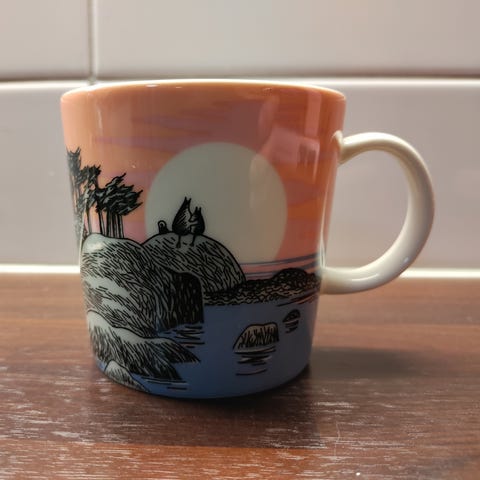 Käyttämätön muuminpäivä muki 2018. Hinta 53 euroa.