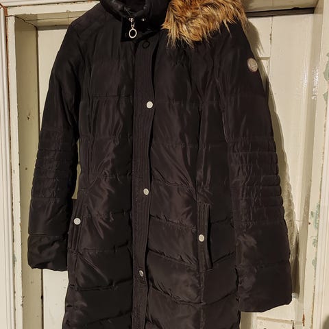 Musta talvitakki Luhta. Irroitettava tekoturkishuppu. Kevyt ja lämmin. Nouto/ postitus. Ei toridiili.
