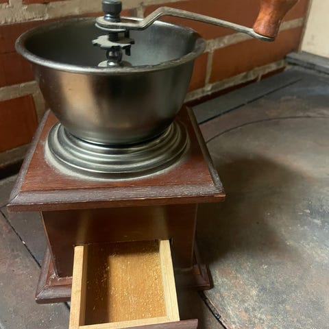 Kahvimylly, koristeeksi tai käyttöön. Kahva pyörii, toki ei olla käytössä testattu meillä.
