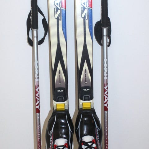 Hyväkuntoinen 120 cm Atomic pitopohjasuksipaketti Salomon monot + sauvat saatavilla talven hiihtoihin. Näitä suksia ei tarvitse voidella vaan ovat heti käyttövalmiit .