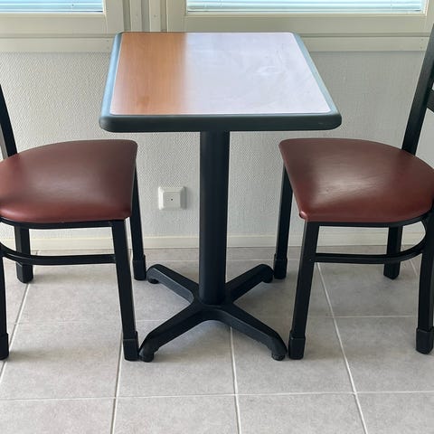 Puisella tasolla ja metallijaloilla varustettu baaripöytä. Jalat alunperin väriltään lähempänä pöytätasoa, itse maalattu mustaksi. Kulumaa näkyy kuvissa. Pöytälevy hyvässä kunnossa, ollut vähällä käytöllä ja myöhemmin varastossa. Mitat arvioita.
