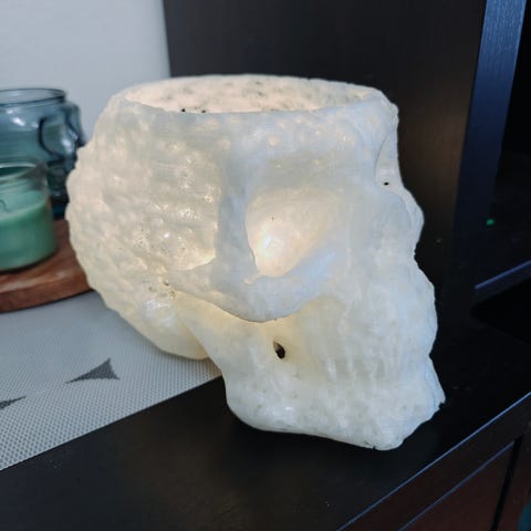 Väriä vaihtava 3D näköinen pääkallo led valo. Valon väriasetuksia on monta erilaista. Toimii pattereilla tai micro usb johdolla.