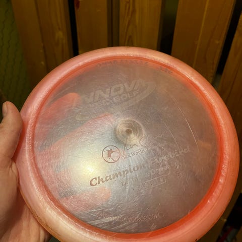 Täydellisessä kunnossa oleva Faster Your Seatbelt-stämpillä oleva Limited edition Innova Destroyer distance driver.