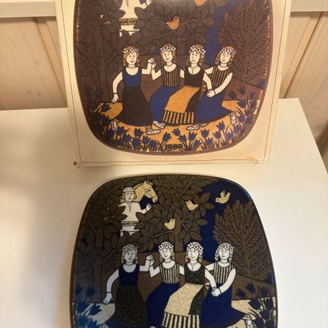 Lautasen kunto on hyvä. Takana kiinnike seinään kiinnittämistä varten.