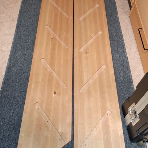 Massiiviset laadukkaat puuportaat 397x87 cm. Nousu noin 2,5 metriä noin kolmen metrin matkalla (40 astetta). Askelman syvyys 28 cm ja leveys 79cm.