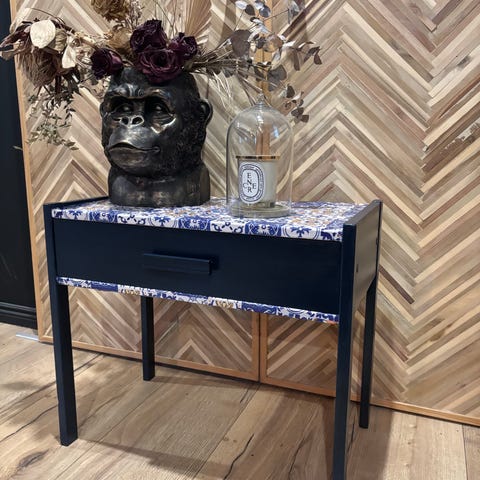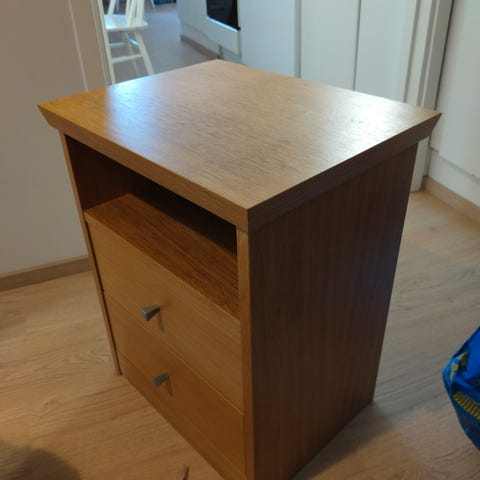 Myydään kuvan yöpöytä. Tällä hetkellä Padasjoella, mutta kulkeutuu ilmaiseksi Hämeenlinnaan ja korvausta vastaan muuallekin.