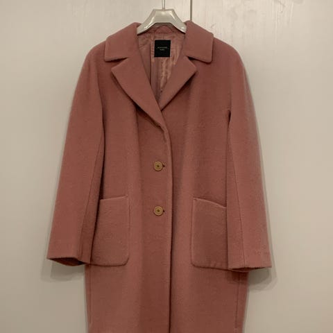 Reversible long coat in water-repellent fabric with goose down padding and a removable fur trim-embellished hood. The garment boasts concealed-zip side pockets and press stud-opening side hem slits. Contrasting quilted fabric interior. Customised small butterfly emblem detail on the front hem and outer collar at the back. Covered zip and concealed press-stud fastening