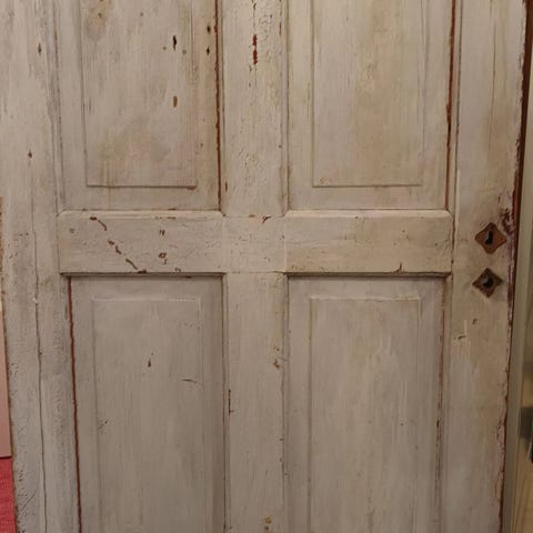 Leveys 81cm & korkeus 200cm. Ulkopuolelta paklattu joitain kohtia, mutta muuten ok kunnossa. Kestävä vanha keittiön ovi.