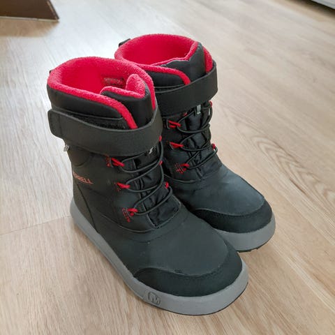 Myydään uudet Merrellin Snowbank talvikengät kokoa 31. Olikin omalle lapselle jo pienet ennen sesongin alkua. Pitäisi pitää jalat lämpimänä -32 asteessa. Suosittelisin 30 kokoa käyttävälle, koska omalla lapsella muut kengät nyt 31 kokoa ja nämä oli jo pienet.