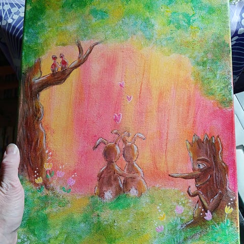 "Satumetsän siimeksessä" 30x40 ripustusvalmis akryylimaalaus canvakselle