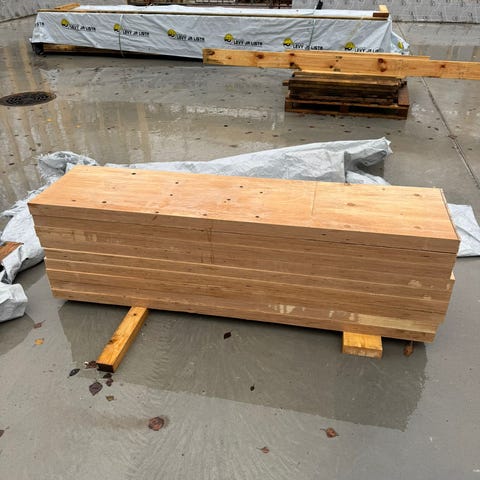 Ylimääräiseksi jääneet palkit, säilytetty kuivassa.