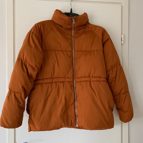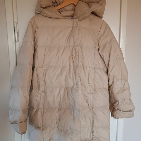 Lähes käyttämätön lyhyt italialsinen untuvatakki. Korkea kaulus antaa ilmettä ja kiiltävä pinta tyylikkyyttä. Kivat ompeleet ja yksityiskohdat.