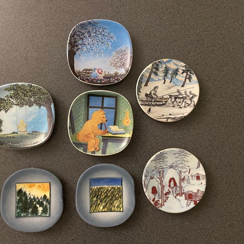 Myydään erittäin hyväkuntoiset Arabian seinätaulut: kevättunnelmia ja syystunnelmia. Design Anita Rantanen-Siewers.