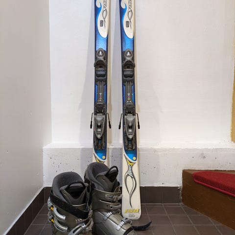 Suksissa ja monoissa on normaaleja käytönjälkiä, mutta ne ovat edelleen täysin toimivat ja hyvässä kunnossa.