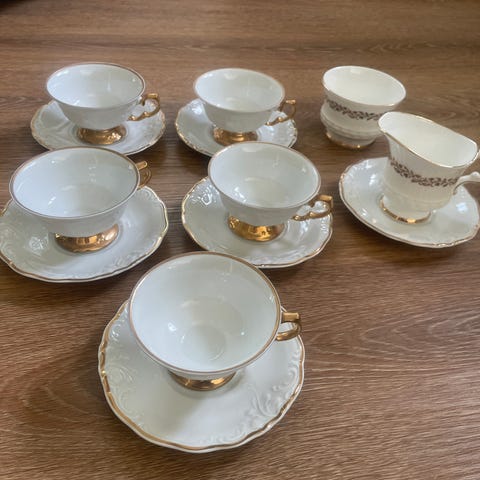 Arabian kahvikupit, alus lautaset ja asetit neljälle. Ehjiä ja siistejä.