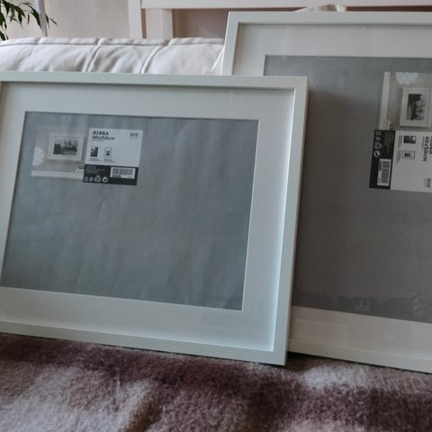 Hopeanvärinen taulun kehys koko noin 47x65cm. Siimaripustin taustalla.