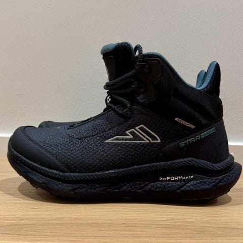 Kevyt ja ketterä nastanilkkuri, pitoa jäälle ja lumelle. Vedenpitävä ja vaimennettu. Ovh 139€.