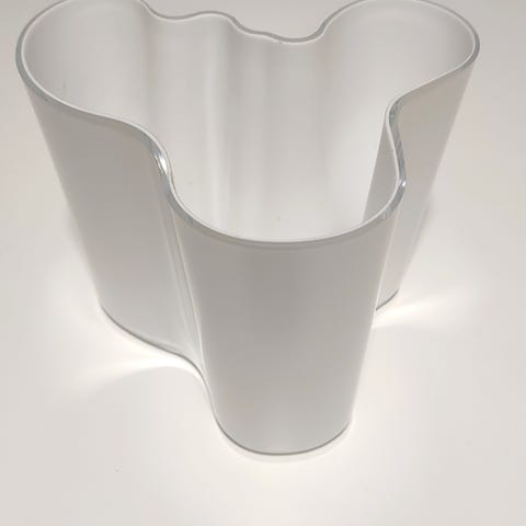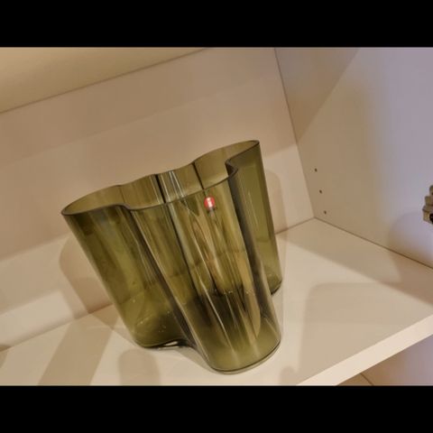 Iittalan Aalto maljakko 160mm kirkkaasta lasista. Maljakko muuten erittäin hyvässä kunnossa, ainoastaan nuppineulanpään kokoinen lohkeaa laidassa, jota nopeasti katsottuna ei edes huomaa. Ei ole lähtenyt halkeamaan. Pesen vielä puhtaaksi ennen myyntiä :)