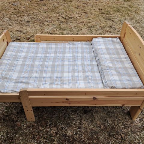 2kpl puinen jatkettava lastensänky. Patjan saa mukaan. Leveys 85cm, pituus 120-200cm.
