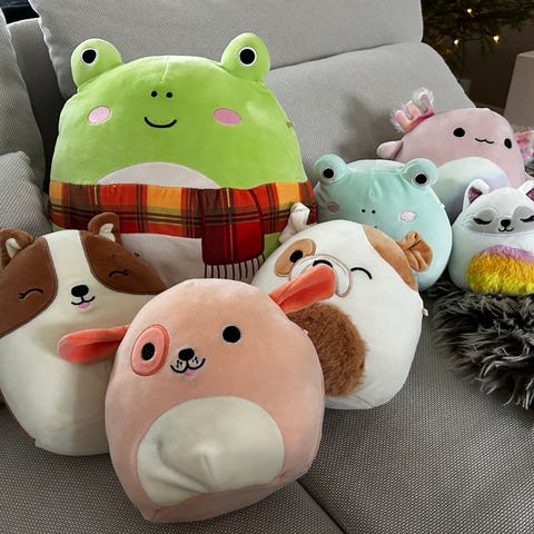 Squishmallows pehmolelut lasten leluihin, yksi Bigfoot vaaleanpunainen ja toinen lehmä, molemmat pehmeästä materiaalista valmistettuja. Soveltuvat lasten leikkeihin ja keräilyyn. Jättikoko. 1kpl 25€ - molemmat yhteensä 40€