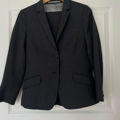 Naisten harmaa uudenveroinen puku. Malli Lovann. Materiaali villaa. Koko 38. Pari krt ollut käytössä.