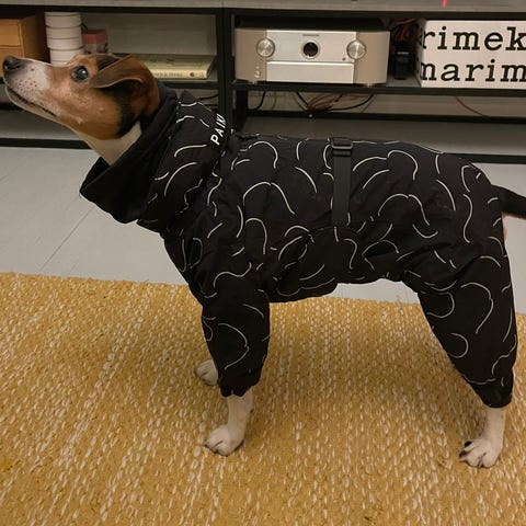 koiran haalari karva vuorella koko 12.punteissa ja hihansuissa resorit sekä vyötäröllä kiristysmahd.ihanan kirkkaat värit vain kokeiltu laadukas merkki ovee H noin 59 €