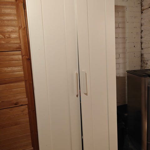 Kuvan mukainen vaatekaappi. Vain yksi hylly. Hieman käytön jälkiä. Kätisyys vaihdettavissa