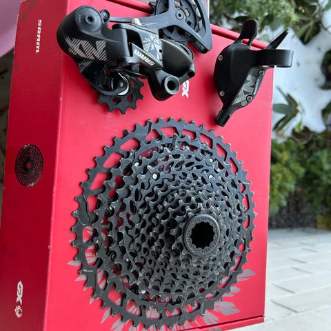 SRAM GX takavaihtaja 12-vaihteiseen järjestelmään, käytetty, toimii, näkyvissä käytön jälkiä. Tähän mukaan lisähinnasta vaihdevipu