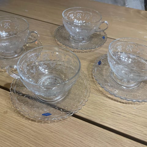 Myydään Nuutajärven lasin kirkkaat Apila-teekupit.