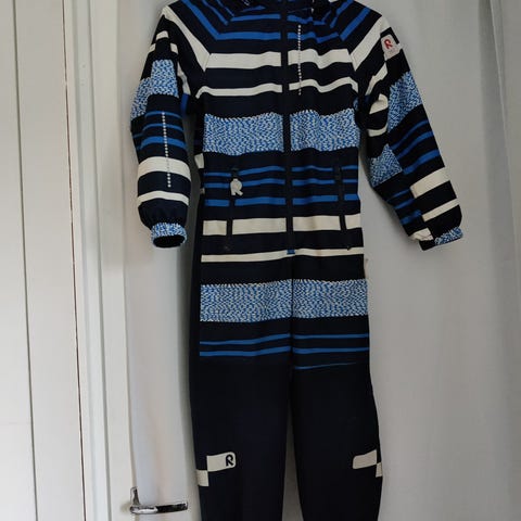 Erittäin hyväkuntoinen Reimatecin haalari. Koko 128 cm. Toisessa polvessa pienen pieni kuluma, tämä näkyy kuvissa. Merkki takana hiukan rispaantunut, tästäkin kuva. Oikein hyvä haalari seuraavalle.