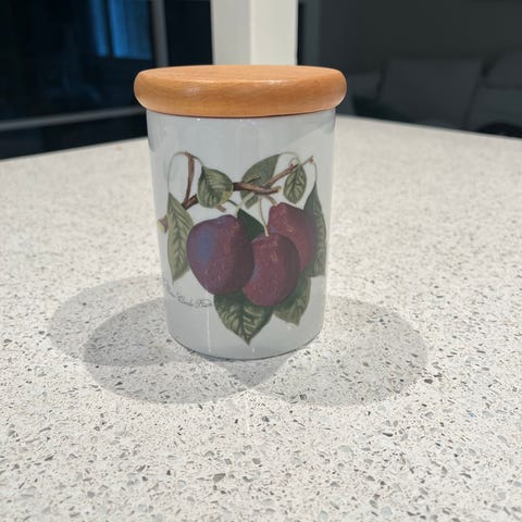 Pieni Portmeirion Pomona -sarjan purkki, Red Currant -kuvio.