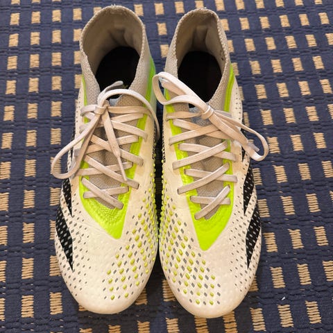 Ihan paristi käytetyt. Ostettu uutena kesällä prismasta. Suojuksien koko M ja nappulakengät kokoa 35.