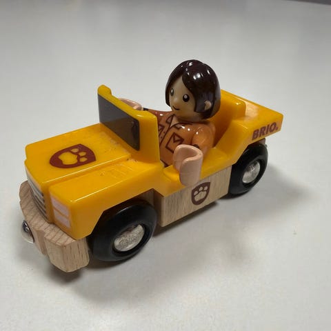 BRIO lasten leikkiautot, 2 kappaletta, yksi punainen ja yksi sininen. Valmistettu kestävästä materiaalista, varustettu valkoisilla renkailla ja keltaisella ohjaimella. Soveltuu lasten leikkeihin. Hyvä leikitty kunto.