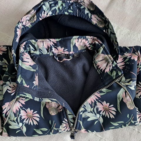 Kuvien mukainen haalari. Peppu ja polvet ehjät, värjäymää käytöstä kuitenkin tullut kuten kuvista näkyy.